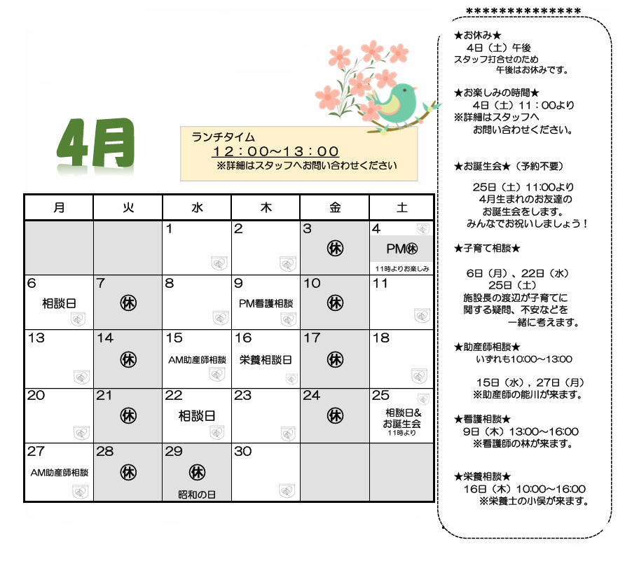 【ぽっけ 新横浜】2026年4月の予定 ≫