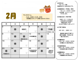 いつも「ぽっけ」をご利用いただきありがとうございます。2月の予定を載せますね。お気軽にご利用ください。